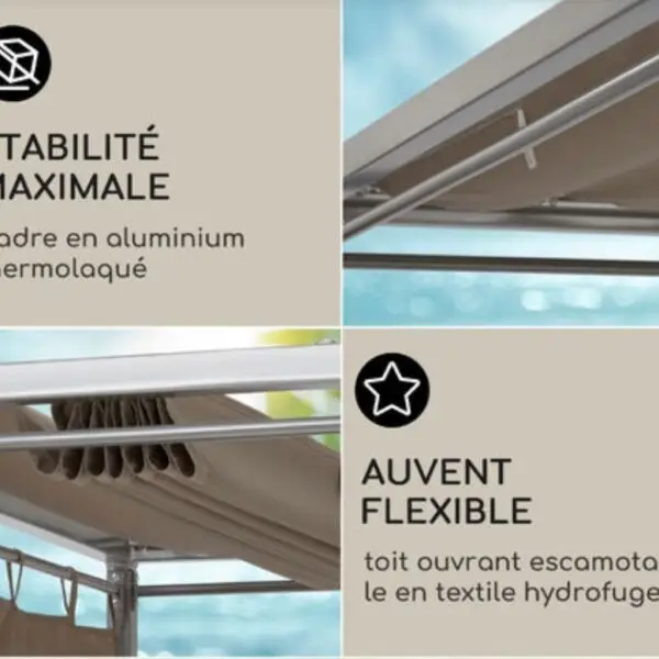 Le Double Sunbed Eremitage est doté d’un solide cadre en acier et de deux grands espaces de couchage côte à côte, offrant ainsi beaucoup d’espace pour deux personnes. Un pare-soleil rétractable fournit une ombre efficace et permet de prendre un bain de soleil agréable pendant plusieurs heures. Quatre rideaux latéraux opaques assurent l’intimité nécessaire et une protection solaire supplémentaire. Le rembourrage confortable de 6 cm d’épaisseur et les revêtements hydrofuges de grande qualité permettront à tous les amis de la détente de profiter de l’expérience Sheer Luxury avec le Double Sunbed Blumfeldt Eremitage. Les dossiers réglables à quatre positions fournissent en outre le bon angle pour lire, travailler ou se détendre. Malgré son poids relativement réduit, le Double Sunbed Blumfeldt Eremitage est extrêmement stable et peut supporter jusqu’à 220 kg au total.