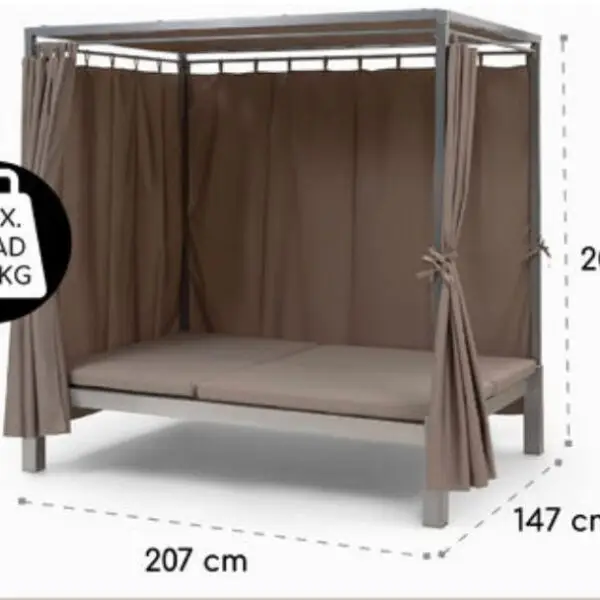 Le Double Sunbed Blumfeldt Eremitage vous garantit un confort maximal sur deux transats de luxe et crée une agréable atmosphère de convivialité avec ses quatre rideaux.