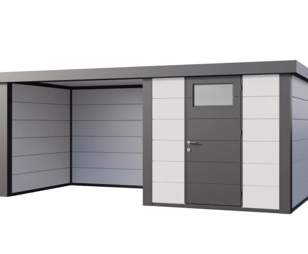L’avis du spécialiste sur l’abri Telluria Eleganto Lounge 2424 en acier galvanisé gris blanc anthracite 12,5m² avec extension gauche