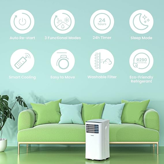 COMFEE’ Climatiseur Mobile 8000 BTU/h 2,3kW, 3-EN-1 Refroidisseur Déshumidificateur Ventilateur, Fonction Follow me, Minuterie, Pour salon et appartement de 29㎡/78m³, MPPH-08CRN7, R290