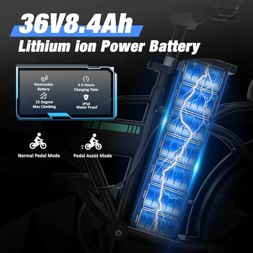- Moteur puissant et batterie durable: Le vélo électrique EG05 est équipé d’un puissant moteur sans balais de 250 W qui atteint des vitesses allant jusqu’à 25 km/h. La batterie 36 V 8,4 Ah offre une autonomie de 35 à 70 km. La batterie amovible vous permet de recharger n’importe où, une charge rapide ne nécessite que 4 à 5 heures
