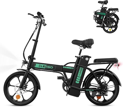 ELEKGO Vélo électrique 16 Pouces Vélo Pliant 36V 8,4Ah Batterie Vélo de Banlieue, Moteur 250 W Vélo de Ville, jusqu’à 35-70 km Vélo électrique pour Adultes