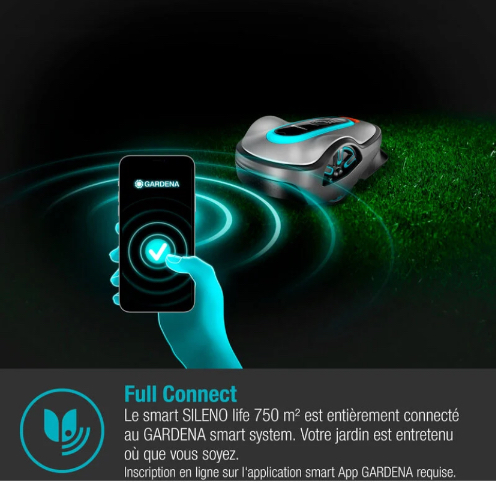 Livrée en kit avec son boîtier smart Gateway GARDENA, la tondeuse robot smart SILENO Life 750 est entièrement connectée grâce au smart System permettant le contrôle et le pilotage à distance de la tonte de votre jardin via l’application smart App. L’assistant de programmation disponible depuis l’application smart App GARDENA vous guide pour installer pas à pas votre tondeuse robot connectée.