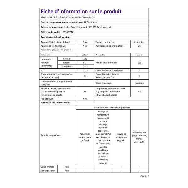 LG Réfrigérateur américain GSI960PZAZ, 625 l, Froid no frost Éco-énergétique